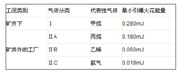 根據(jù)可能引爆的最小火花能量,我國和歐洲及世界上大部分國家和地區(qū)將爆炸性氣體分為四個危險等級,如下圖:
