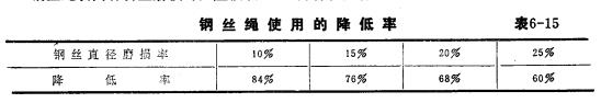 鋼絲繩表面有明顯磨損時,應按表6—15降低使用標準。