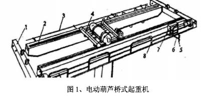 起升電動機釆用電動機與制動器組成于一體和錐形轉(zhuǎn)子制動電動機, 電動機按制動轉(zhuǎn)子原理工作。電動機接電時, 錐形轉(zhuǎn)子產(chǎn)生軸向竄動, 制動器脫開, 電動機正常運轉(zhuǎn), 斷電后, 在彈賛力的作用下, 轉(zhuǎn)子返回,同時制動輪與后端蓋錐面剎緊而制動, 制動輪也起風(fēng)扇輪的作用, 電動機散熱性良好, 制動環(huán)用隨取橡膠樹脂脂制成。耐磨性好、 制動可靠、調(diào)整容易, 更換方便, 起升的電機亦可釆用雙速機構(gòu) 。