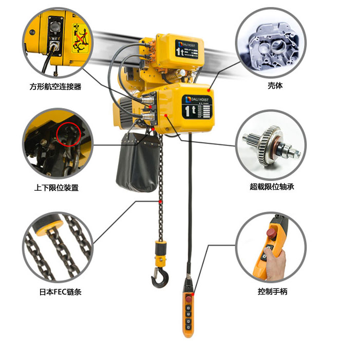 PDH單速控制型環(huán)鏈電動(dòng)葫蘆,結(jié)構(gòu)新穎本機(jī)采用高強(qiáng)度的鋁合金機(jī)體,外形美觀(guān)、機(jī)體緊湊、體積小、重量輕。采用二級(jí)齒輪傳動(dòng),高速級(jí)為斜齒 輪傳動(dòng),因而傳動(dòng)平穩(wěn)、噪聲小。全鋁機(jī)身使葫蘆輕便,外形更加優(yōu)美極大的提高了葫蘆的抗腐蝕度和散熱效果。下面是它的具體的參數(shù)介紹。24小時(shí)手機(jī)熱線(xiàn):15803222055
