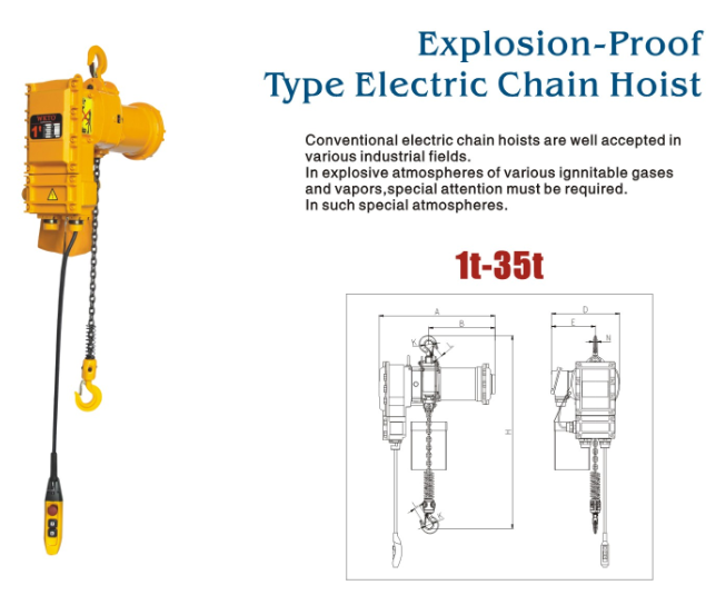 防爆環(huán)鏈電動葫蘆采用了變速器、吊架和電動機三大部分軸向組裝一體的先進結(jié)構(gòu),這種結(jié)構(gòu)不但維修方便,而且具有良好的封閉作用,尤其更適用于室外及灰塵較多的場合。該防爆葫蘆的動力是采用我國新型的盤式制動電動機,該電動具有體積小和制動可靠、靈敏等優(yōu)點,強度耐磨損的鋼制鏈條提升穩(wěn)定安全,是理想的小型起重工具。
