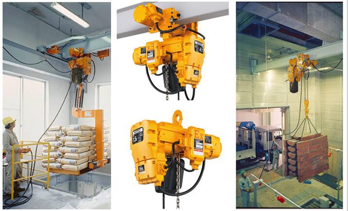 GXG型防爆環(huán)鏈電動葫蘆是小噸位、低起升高度的鋼絲繩電動葫蘆的最理想替代產(chǎn)品。一般安裝在架空工字鋼軌道上,或懸掛在固定架和專用吊具上起吊貨物及與設(shè)備配套到等,廣泛應(yīng)用到工廠、礦山、倉庫、碼頭、建筑工地、商場、賓館等行業(yè)。